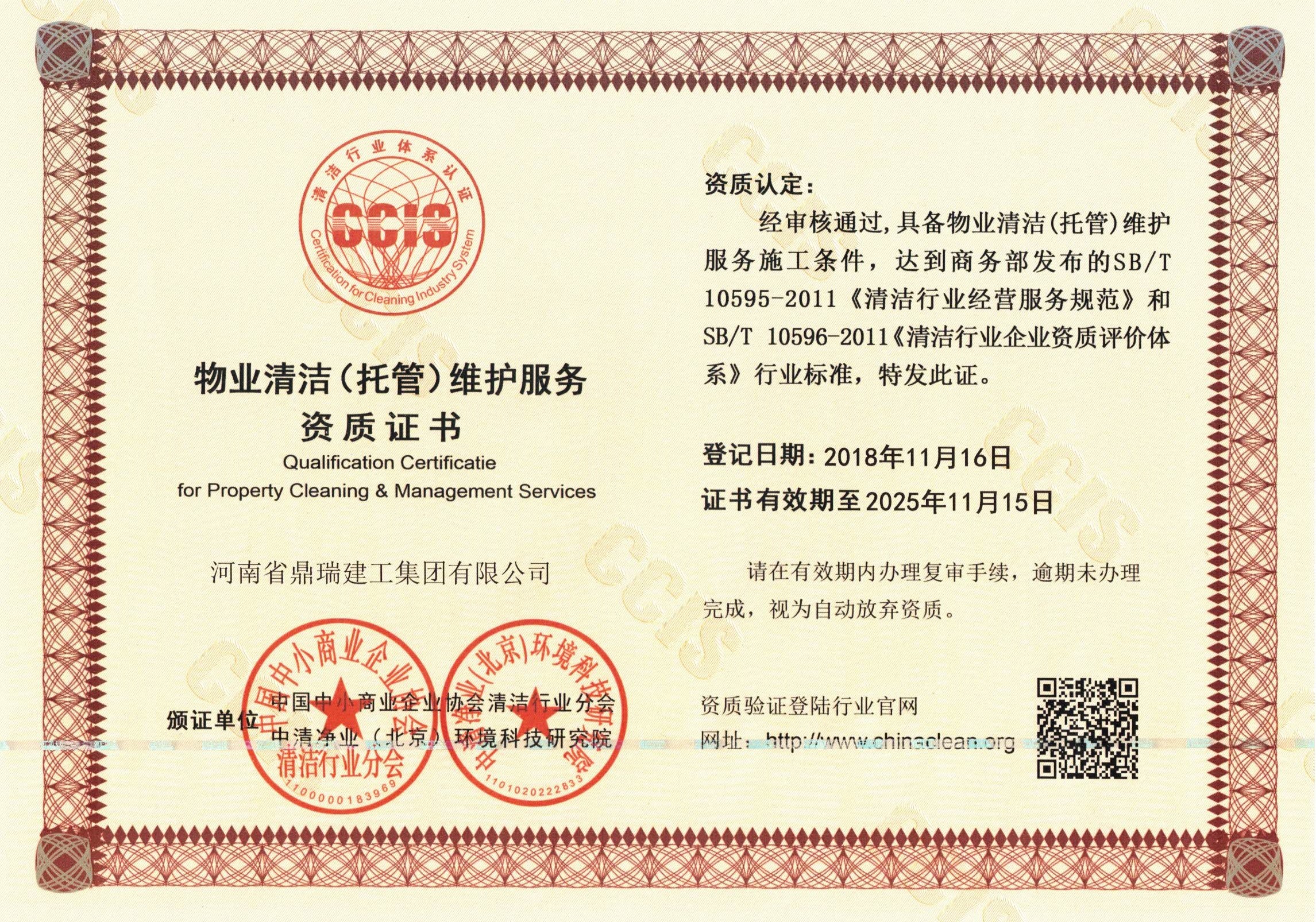 物業(yè)清潔(托管)維護服務資質(zhì)證書